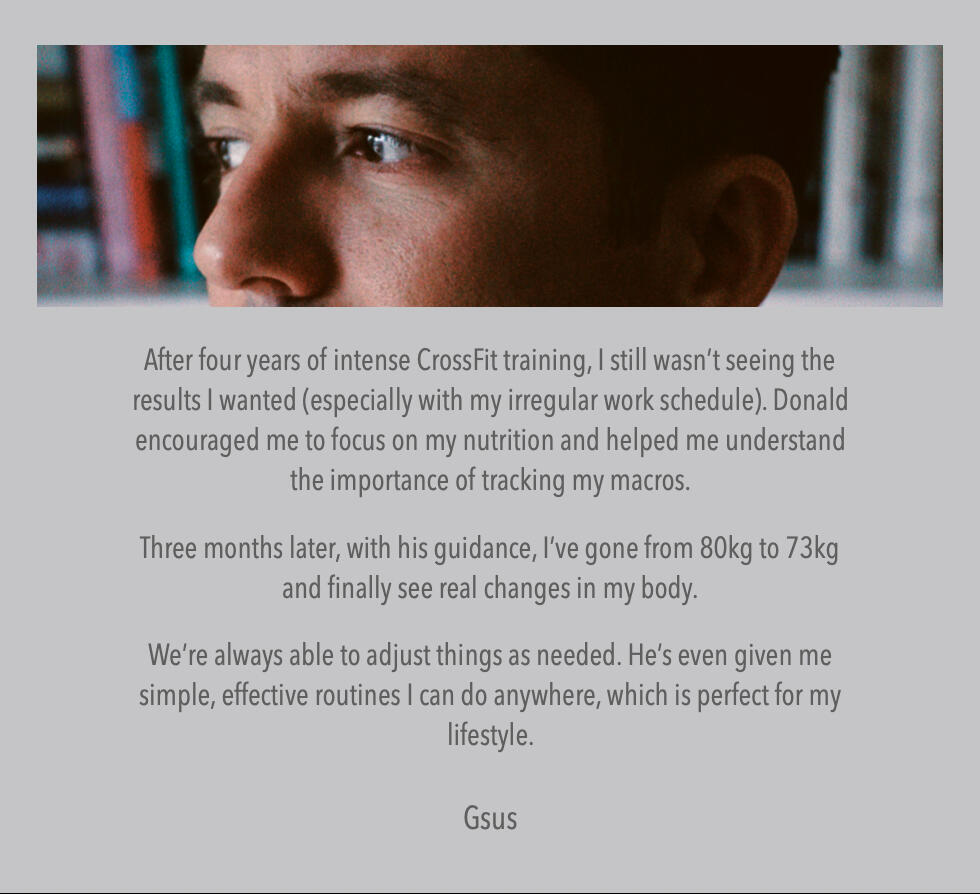 I’ll create a fully bespoke nutrition and workout plan tailored to you based on our call and questionnaire. I’ll then guide you through everything you need to get started.